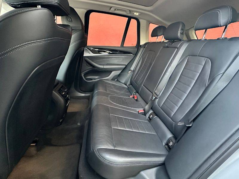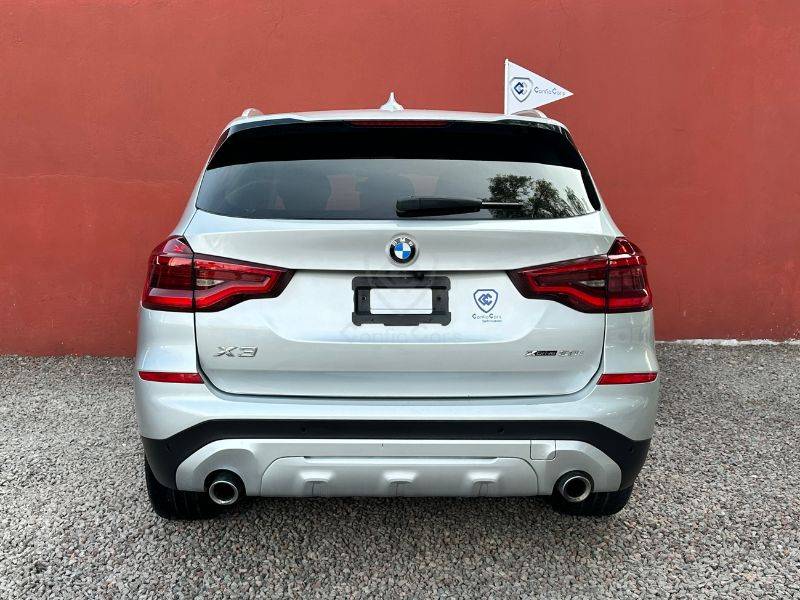 Es un vehículo de la marca BMW, modelo X3 XDrive, del año 2021, color plata en el exterior y negro en el interior.