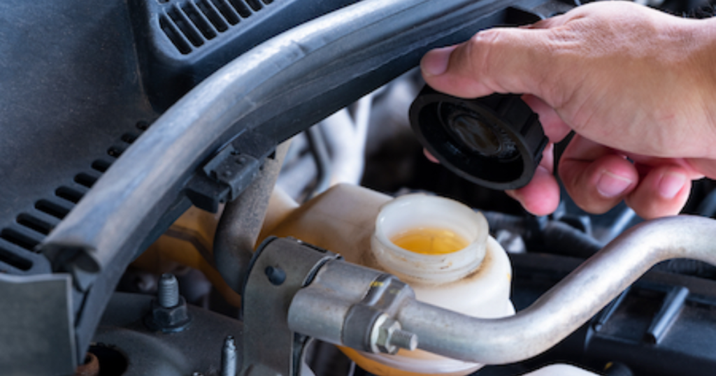 El líquido de frenos transmite la fuerza que ejerces en el pedal hacia las ruedas. Si se fuga, pierdes capacidad de frenado.