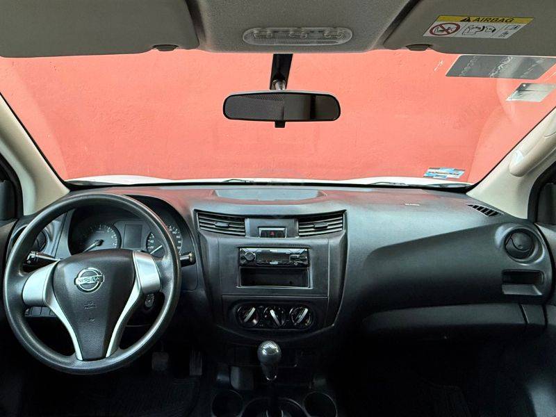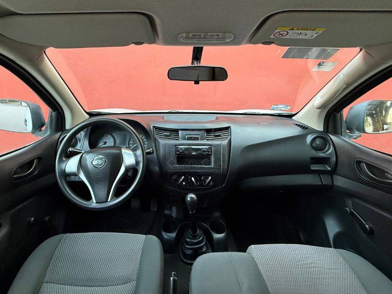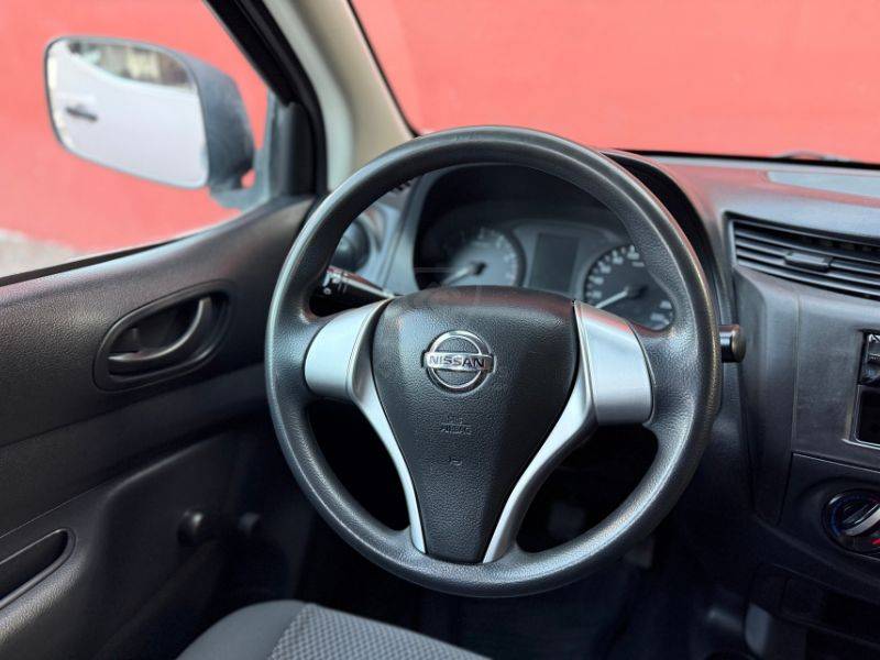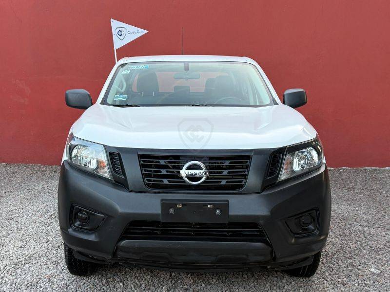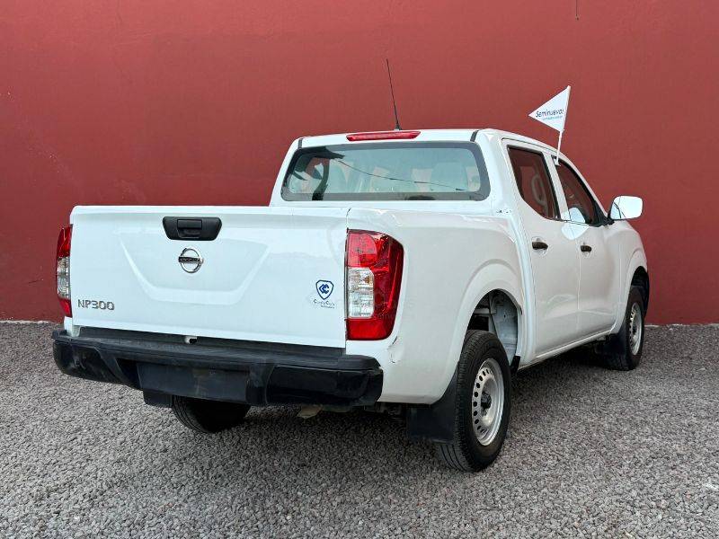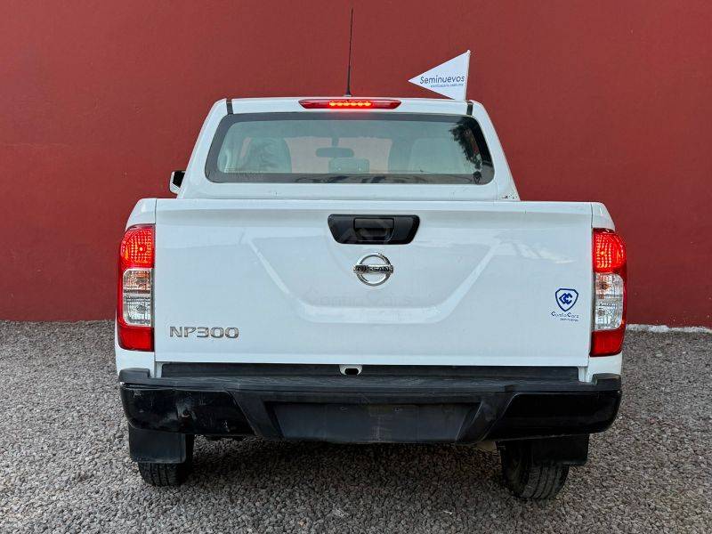 Es un vehículo de la marca Nissan, modelo NP300, del año 2020, color blanco en el exterior y negro en el interior.